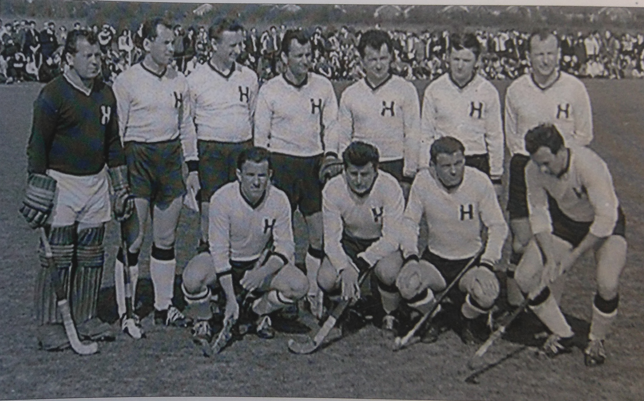 1964-Mužstvo Hostivaře před závěrečným utkáním Thanet Hockey Festivalu. Polda Navara – stojící druhý zprava