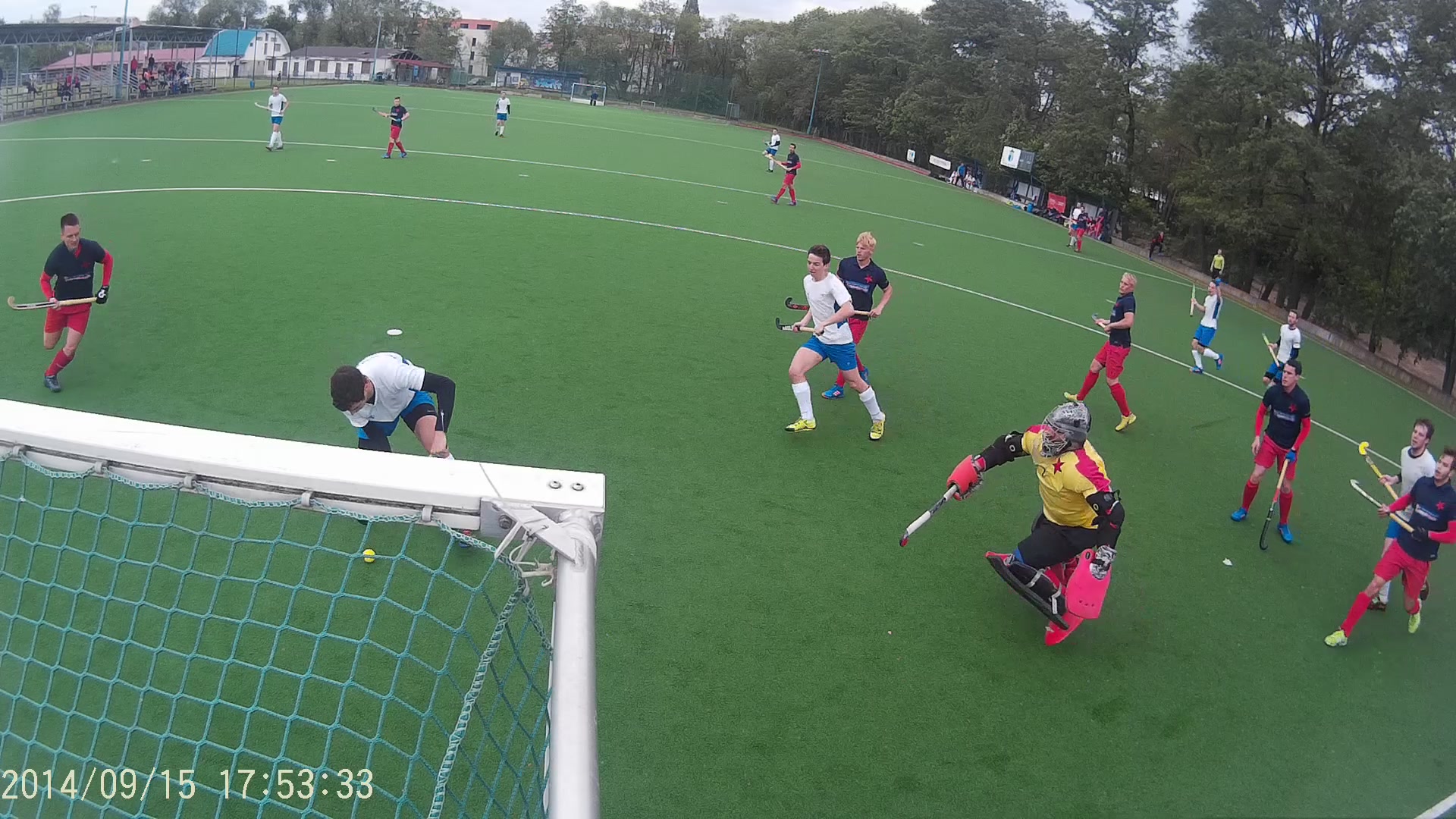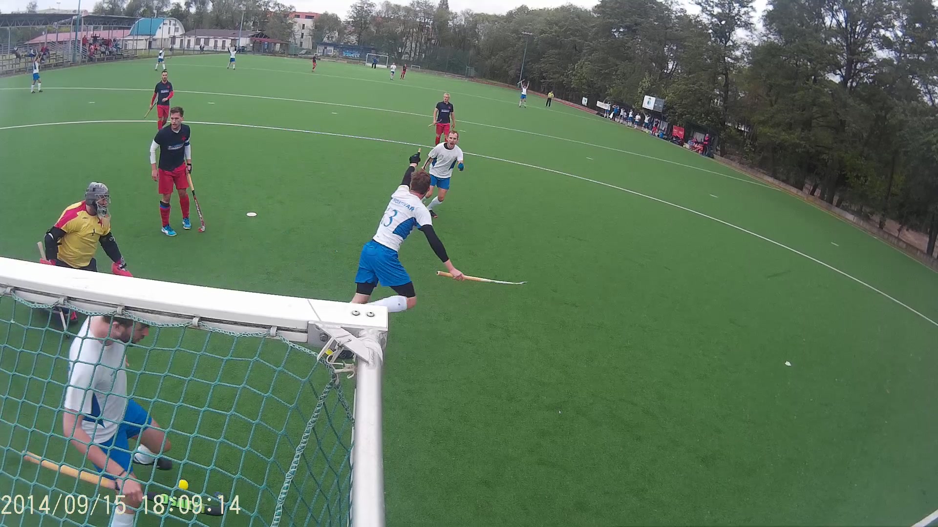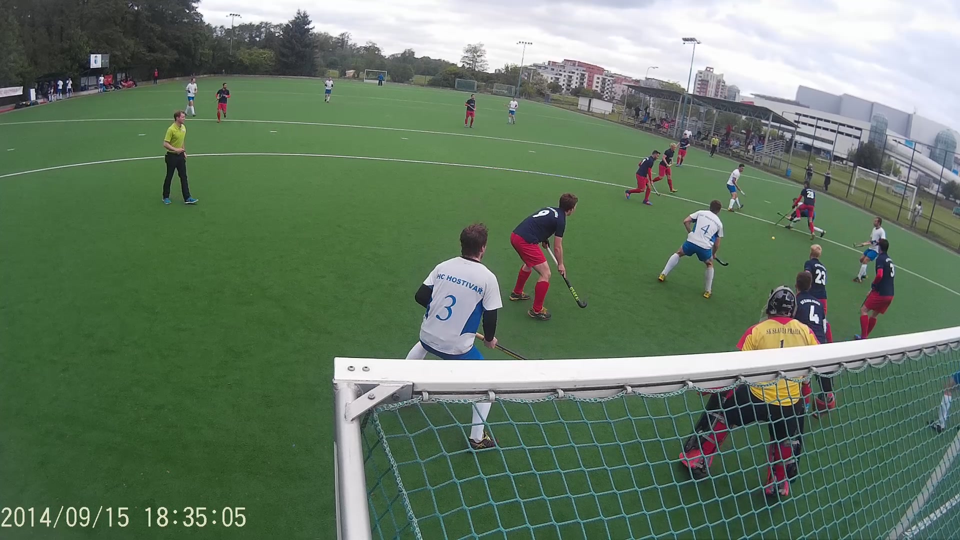 Oba poločasy přinesly hokej v poměrně rychlém tempu. Hostivařští kluci pracovali jak v defenzivní tak v ofenzivní části velmi poctivě. Každé mužstvo povzbudí, natož proti SKS, když skóruje z první šance. Do konce poločasu pak velmi zdařilé akci zvýšil Tomáš Pauer na 2:0. Výkon mužstva HCH byl velmi koncentrovaný, kompaktní s patřičným nasazením. Proti Slavii musí být i trochu štěstí, což jsme měli, nicméně HCH šlo štěstí naproti. Začátek druhého poločasu jsme nezachytili, nicméně po time-out se opět hrál poctivý, jednoduchý a organizovaný hokej s patřičným důrazem. Vyústěním těchto snah pak byl velmi zdařilý třetí gól HCH (plná verze videa bude až na poradě), kdy byla hokejově přehrána záloha a obrana SKS. Tento gól byl zvláště potěšující. Samozřejmě vysoké tempo, nezkušenost družstva HCH (s takto těžkými zápasy) si vzalo svoji daň, kdy SKS po sérii rohů snížili na 3:2. Bohužel 11 minut před koncem došlo k zranění Tomáše Pauera (vybíhání rohu), což mělo za následek chaos ve středové řadě a absence ofenzivní přechodu do útoku. Mužstvo HCH bylo již po náročném zápase unavené a SKS zvýšil svůj tlak ve snaze zvrátit utkání, což vedlo tři minuty před koncem ke konečnému vyrovnání na 3:3.