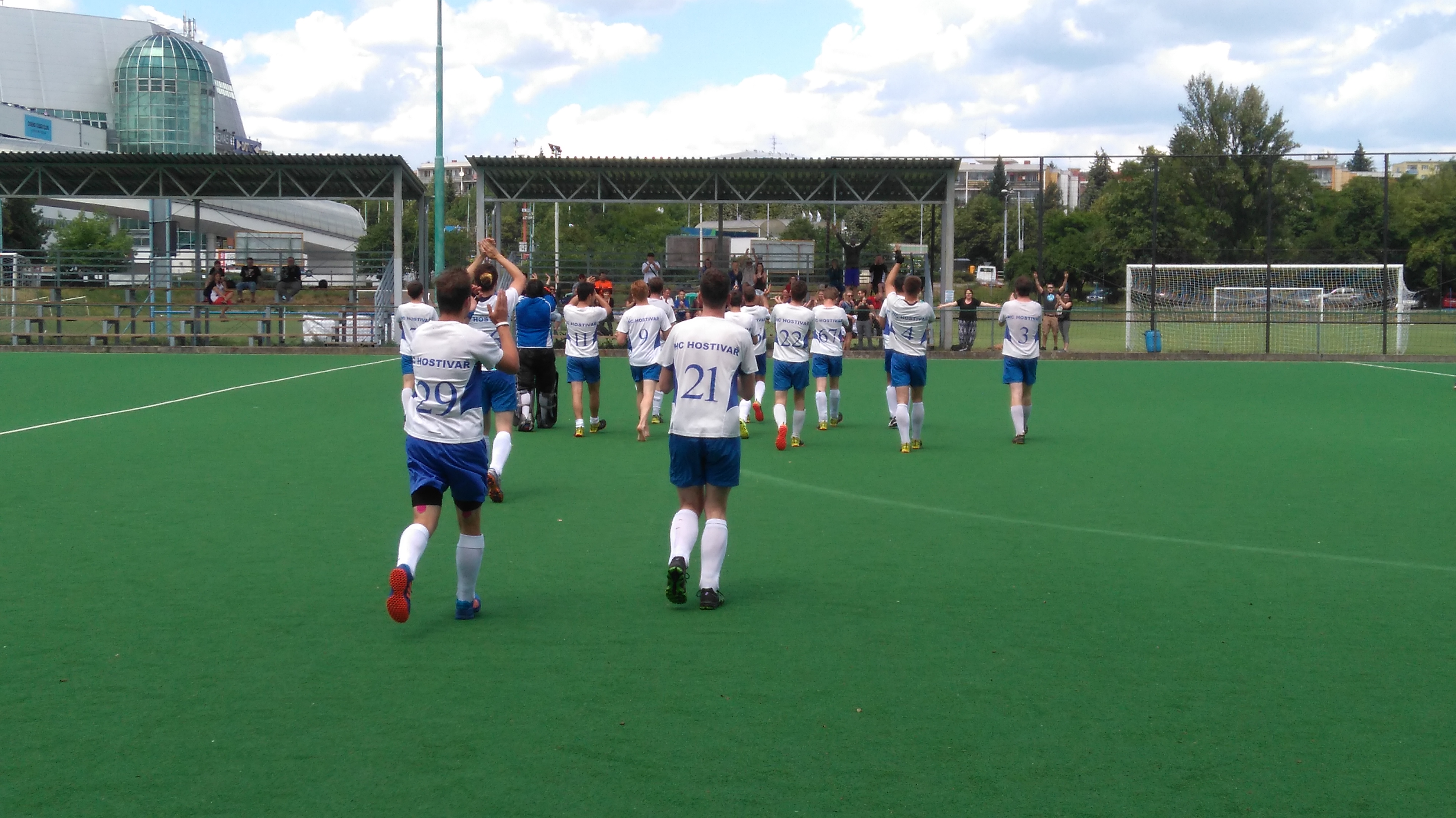 Za pěkné jarního počasí se v sobotu dne 10.6.2017 střetlo za notné divácké podpory mužstvo HCH s Bohemians Praha. Hostivařští v zápase chtěli navázat na jarní výkony a Bohemians zase bojovali o play off. Úvod spíše patřil hráčům v zeleno bílém, kteří byli důraznější a více z nich čišela touha vyhrát. Pro naše hráče to bylo zase poučení, že nikdo k jim nice nedá zadarmo. Od 13 minuty, konkrétně šance Houšky, se hra v důrazu vyrovnala. Na HCH je pak znát, že jarní vlna úspěšných zápasů dává pocit většího sebevědomí, což má za následek zbytečnou komplikovanou hru uprostřed hřiště. Pakliže se HCH vždy během hry vrátí k jednoduché hře, nebezpečnost rapidně vzrůstá. Nicméně očekával bych větší roztahování hry na base line. Příčinou proč tak nehrajeme, je roztažení hřiště a následný pohyb útočníku na base line již při samotné naší rozehrávce. Jsem však spokojen s druhou půlí která byla odehrána poměrně s přehledem jednoduchou hrou. Hráči dále děkují početnému stavu diváků.