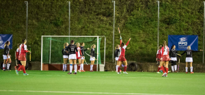 Zápas se odehrával v poněkud nepříjemném počasí a na hřišti panovala zima, proto bylo důležité se pořádně rozhýbat a nenechat si utéct začátek zápasu. Do zápasu jsme vstupovaly s tím, že před sebou máme nelehkého soupeře a mistra republiky z loňské sezóny. Naopak jsme si ale minulou sezónu dokázaly, že s nimi hrát umíme a chtěly jsme se porvat o co nejlepší výsledek a vrátit jim tak smolnou prohru z červnového semifinále. Tempo zápasu bylo rychlé, s čímž jsme počítaly a snažily jsme se hlavně eliminovat mezery, které nám vznikaly v naší zóně. Oproti minulému zápasu se hra ve středu pole a zóna celkově značně zlepšily. První poločas skončil 0:0 bez vážnější akce na obou stranách, z obou stran se hrálo hlavně ve středu pole a na brejky, které se ani v jednom případě nedotáhly do konce.