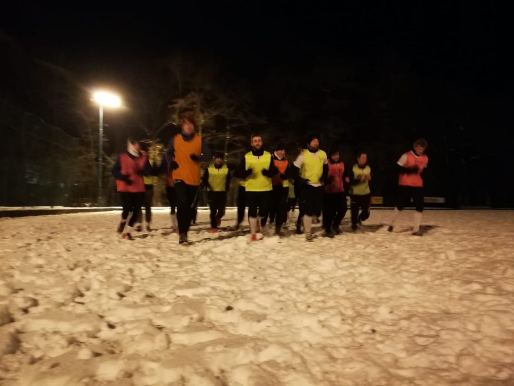 Ač je v názvu článku zimní příprava mužů v plném proudu, je to trochu zavádějící. Příprava na nadcházející sezónu probíhá kontinuálně již od skončení podzimnní části, nicméně „gro“ fyzické přípravy byla naplánována na měsíc leden a únor. Samozřejmě od konce podzimní sezóny se snažíme (jakmile to počasí dovolí – nesmí být led a sníh) mít alespoň z části hokejové tréninky (cca 1/3,1/2 tréninkové jednotky). Začátek února nás však zastihl na hřišti se sněhovou pokrývkou, nicméně tak jako vždy trénink proběhl.