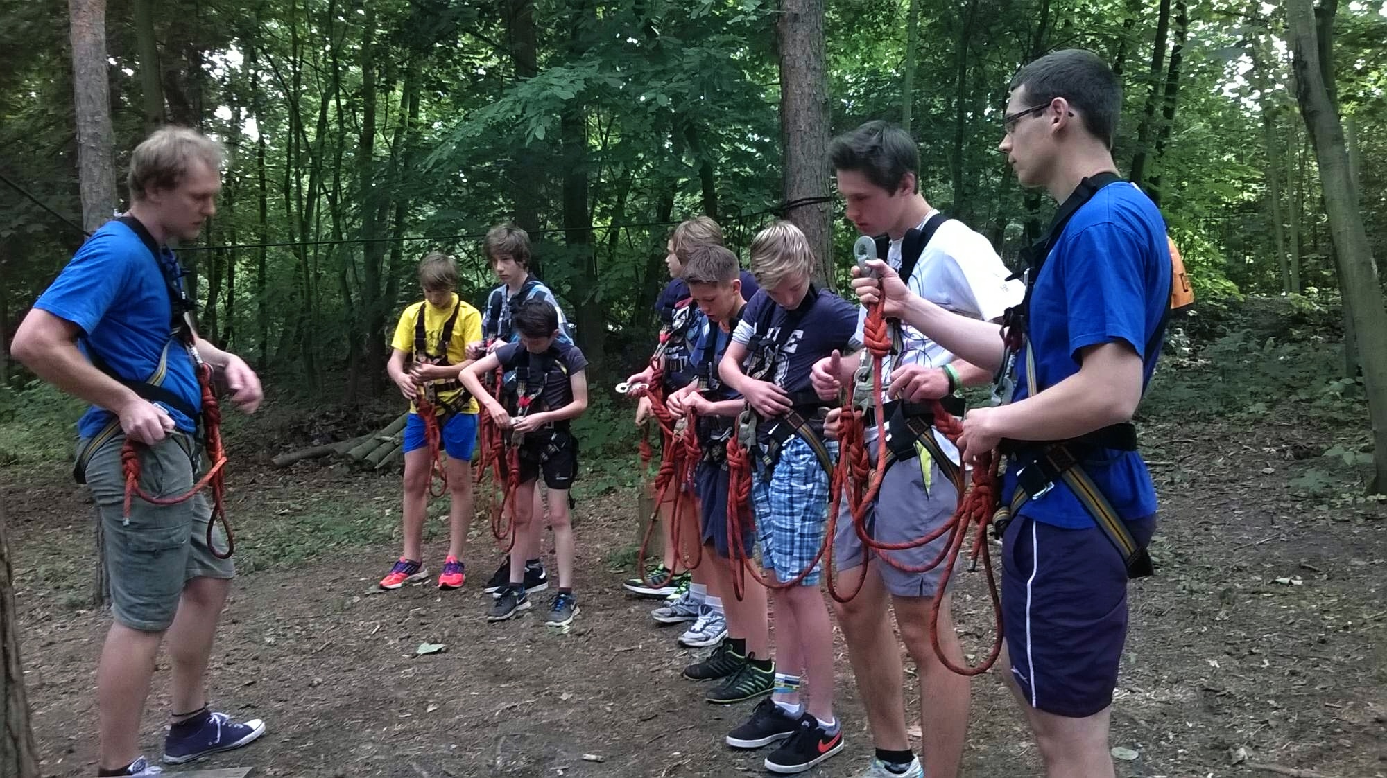 Poslední trénink žáků v uplynulé sezóně jsme navštívili lanové centrum u Hostivařské přehrady, aby si kluci vyzkoušeli také trochu jiného adrenalinu. Milí instruktoři nás navlékli do sedáků a vysvětlili nám zásady bezpečného chování v pětimetrové výšce. Čekala nás překážková dráha v korunách stromů. Některé překážky byly poměrně záludné a náročné na udržení rovnováhy, ale nakonec jsme zvládli celou dráhu a cestu dolu jsme zakončili svezením se na „lanové dráze“. Fotky z akce najdete na rajčeti.