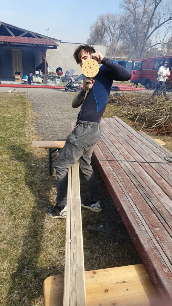 | Zhoblování a následné natření mantinelů u malého hřiště |