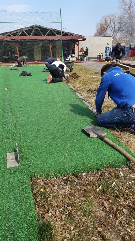 | Oprava poničené trávy na malém hřišti |