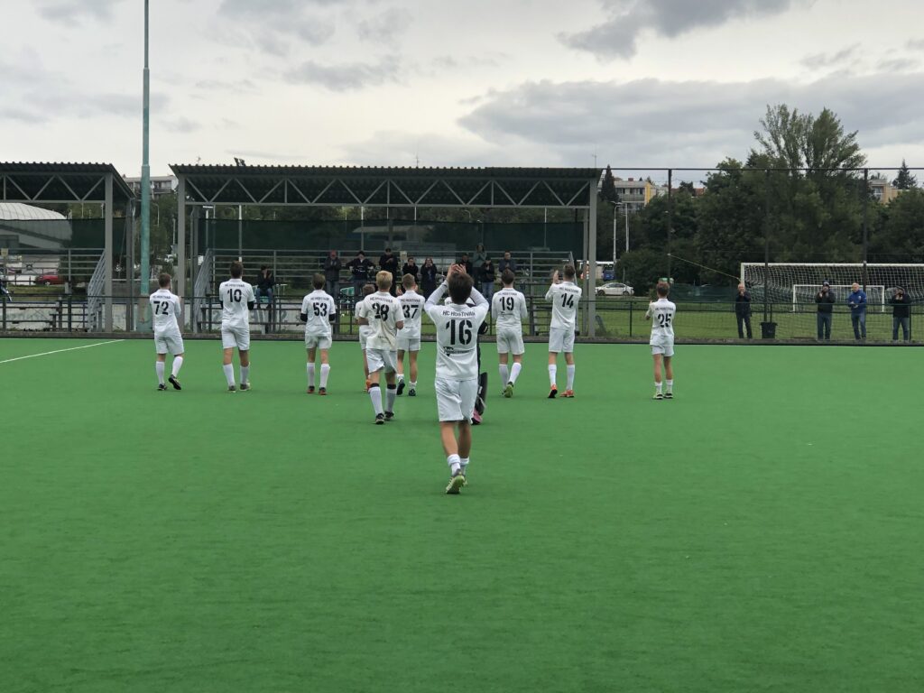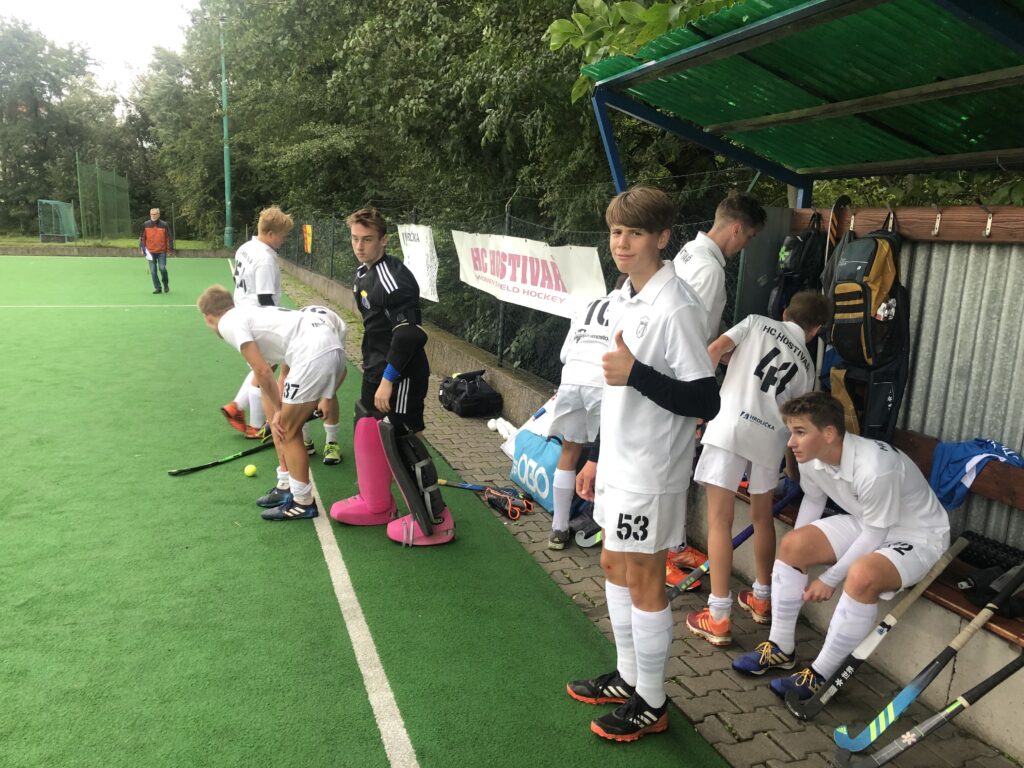 Netradičně se zápas dorostenců uskutečnil ve středu ve večerních hodinách. Bylo vidět, že se jedná o první soutěžní utkání, kde náš tým měl velké potíže v rozehrávce. Pro některé hráče to bylo vůbec první utkání dorostenecké ligy a bylo to znát, neb podlehly nervozitě z utkání. Postupem času se tento faktor vytrácel. Hostivař se prezentovala jednoduchou hrou s účelným ohrožením soupeřovi branky a agresivním napadáním ve středu hřiště. Podařilo se nám vstřelit dva góly po dohrávaném trestném rohu a penaltě, kde se zahrání trestného rohu ujal Jakub Skořepa a penalty Vojtěch Papírek. Soupeř pak snížil také z penalty na konečných 2:1 pro náš tým.