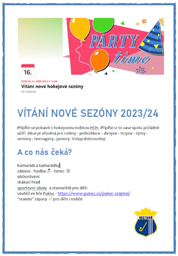 V sobotu 16. září musíte být u toho! Od 10:00 hrají domácí utkání ženy a hned od 12:00 muži, oba týmy porovnají své síly proti HC Bohemians. A pak to začne i pro děti a další návštěvníky. Máte se na co těšit – pište si do diáře!